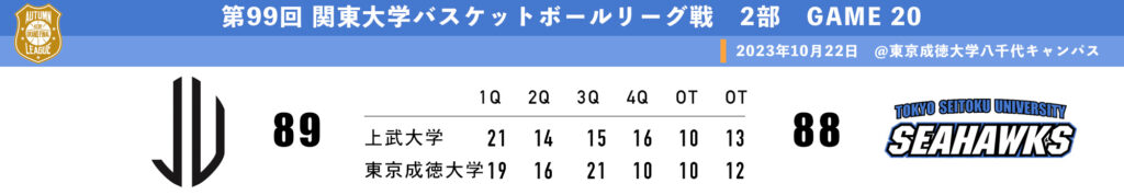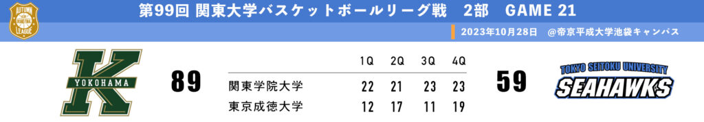 第99回関東大学バスケットボールリーグ戦 2部リーグ 第21戦 ●TSU59(12-22.17-21.11-23.19-23) 89関東学院大学◯ 第22戦 ○TSU88(20-18.15-14.29 ...